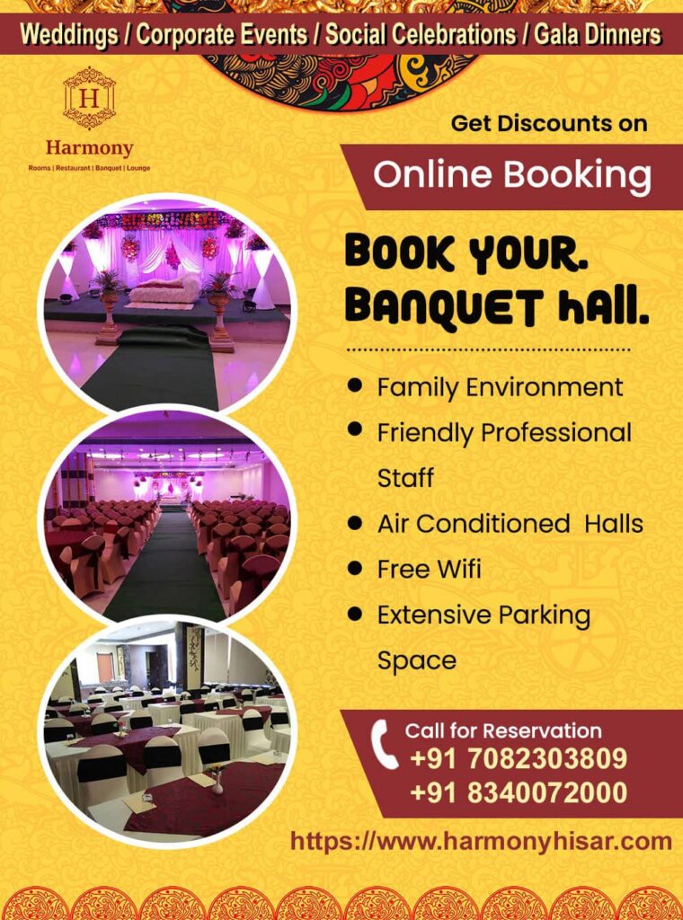 Where elegance meets tranquility in the heart of Hisar. At our establishment, we believe in providing an exceptional experience that harmonizes comfort, luxury, and outstanding service. Whether you are here to celebrate a special occasion, enjoy a relaxing getaway, or indulge in our exquisite culinary offerings, Harmony promises to be your sanctuary of sophistication and serenity.